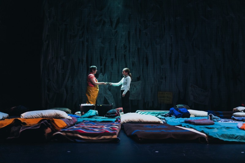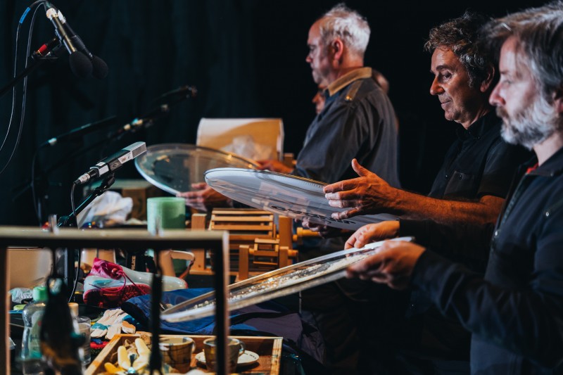 Pero caja negra también es la caja escénica vacía, sin el aparato ilusionista y los decorados del teatro clásico. Por eso saltamos con la idea de integrar la tramoya a la vista del público y generar movimiento de arriba a abajo. Un lugar donde la oscuridad permite otro tipo de apariciones y la luz muestra las tripas del escenario como si fuera el interior de un barco que naufragó y los actores y actrices, una tripulación dispuesta a sacarlo a flote otra vez.
