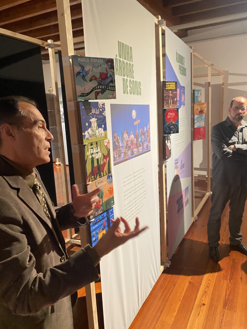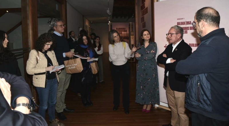 precedidas de un túnel del tiempo, con los hitos más destacables de estos 75 años. El diseño expositivo cumple, además, el reto de adaptarse a las distintas sedes donde se va a instalar. Otro aspecto a destacar es que se puede disfrutar, formando parte de la exposición, de una pieza audiovisual, dirigida por Ana Viqueira, y producida por Nós TV, que recoge testimonios de personalidades vinculadas a la Editorial Galaxia sobre su producción literaria.