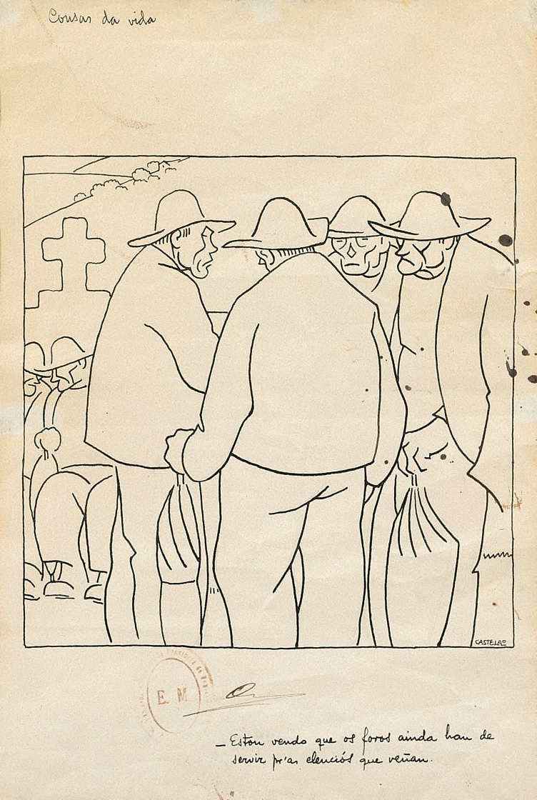 "Castelao 1986-1950 " catálogo de la exposición organizada con motivo del centenario del nacimiento de Castelao por la D.G.BB.AA. y Archivos, Madrid 1986, con la obra reproducida en la p. 218.