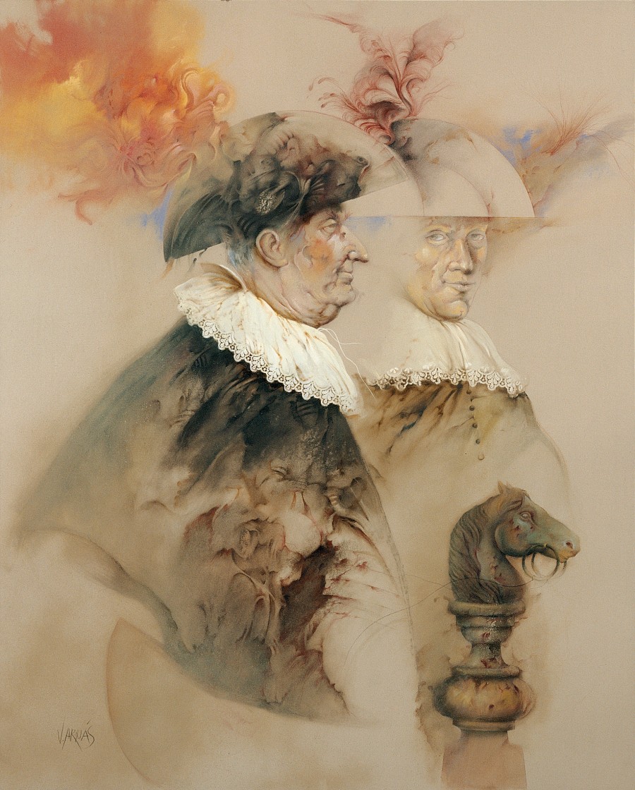 La atracción que el artista siente por el mundo del toreo es evidente en esta obra sugerente y enigmática en la que los alguacilillos son, en realidad, el mismo personaje reflejado en un espejo.