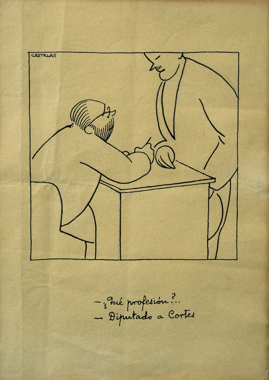 Castelao presenta en esta estampa una fuerte crítica social y política. Frente a la gente humilde del campo que está condenada a emigrar, la clase más privilegiada se dedica a la política, con lo que denuncia la endogamia de los estamentos de poder donde los puestos están copados por señoritos de "familia bien" y gente acomodada.