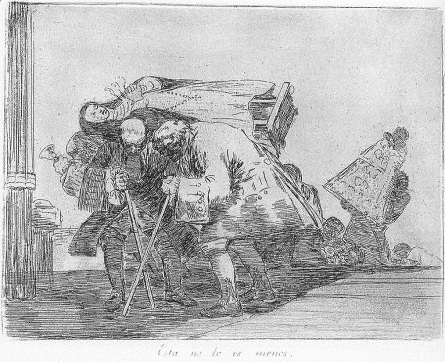 «Los Desastres» que Goya no llegó a publicar en vida, fueron realizados entre 1810 y 1820. En ellos plasma, el genial artista, de forma elocuente, la crueldad de la guerra, el hambre y la represión. Auna en la composición, el dibujo, la luz, el movimiento, el argumento y el tiempo en el que trascurre la escena que casi llegamos a percibir, como una secuencia cinematográfica, en algunas escenas como en la nº 15 «Y no hai remedio», la nº 26 «No se puede mirar», la nº 30 «Estragos de la Guerra» o la nº 41 «Escapan entre llamas».