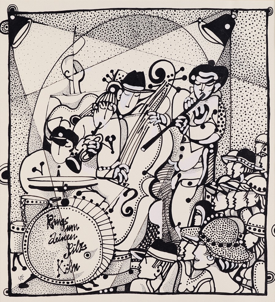 La enriquecedora relación que el autor tiene con la ciudad alemana de Colonia, con su vida cultural, queda retratada en esta serie de cinco dibujos que reflejan la vida nocturna, el ambiente más bohemio de los clubes de jazz donde la música se vive en directo.