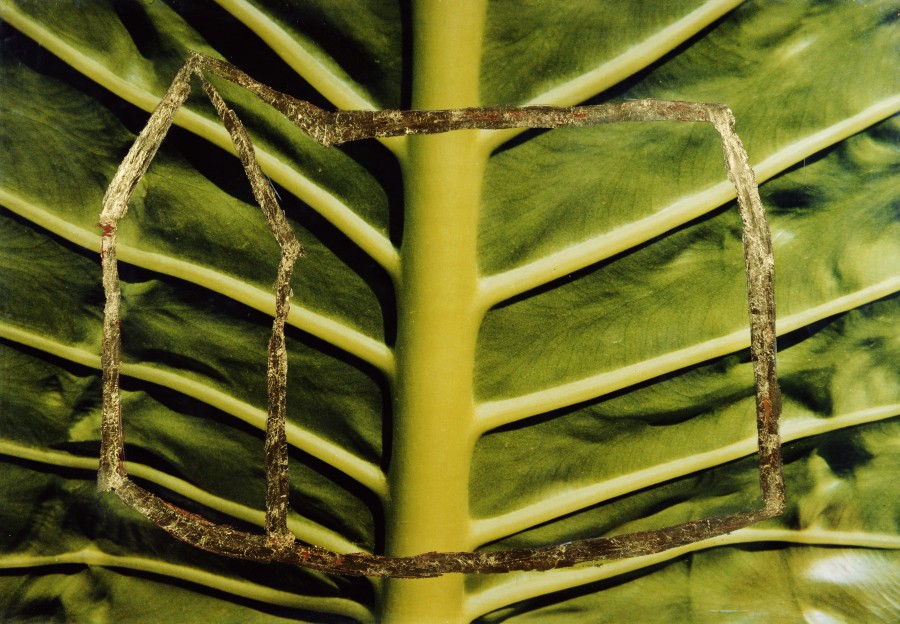 Forma parte de un proyecto en el que comenzó a trabajar en el 92, utilizando como base de su creación artística la fotografía del fragmento ampliado de una hoja, cuya nervadura se impone, pletórica de energía, como el armazón del cuadro. Sobre esta base superpone en el centro de la composición el dibujo sencillo de una pequeña casa, como un sagrario, construida con pan de oro. Este juego entre la fotografía, las formas y los colores, da una imagen imbuida de cierto misticismo.