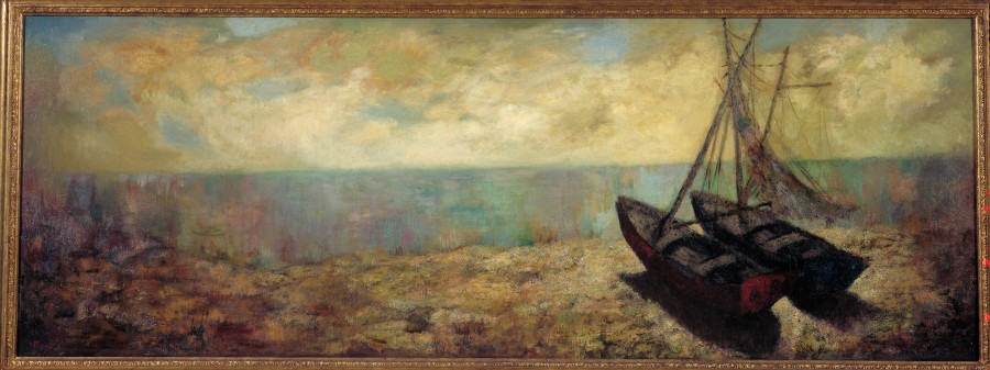 Prego hace uso de ciertas libertades pictóricas en cuanto a texturas y composición y aunque le gusta la observación directa del manual ésta, no es más que un punto de partida para su visión personal de las cosas y del paisaje. El motivo de las barcas solitarias y su sombra sobre la arena de la playa es un tema que repitió Manuel Prego en distintas ocasiones en versiones diferentes. El formato apaisado de la marina y esa atmósfera que se crea entre el gran celaje, el mar, y la arena, muestran la fascinación del artista por los espacios inmensos y solitarios con cierto aire romántico de lo sublime que nos recuerda a Gourbet en esa humana dimensión visual de las cosas que él tenía.
