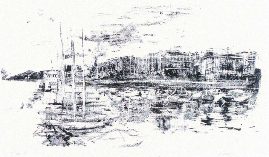 Con dibujo intuitivo, sin fórmulas determinadas, hace aflorar el vivir cotidiano de la gente del mar, sin desgarros ni estridencias, con una intensidad que se ve potenciada por el contraste de la tinta negra sobre el blanco del papel.