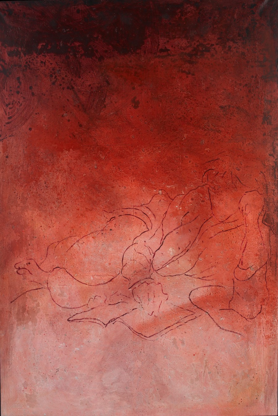 Sobre esta superficie rugosa se asienta la figura de una mujer anónima que recostada lee un libro. Dibujada con trazos esquemáticos, línea dubitativa y simple se asienta suavemente, de forma etérea y se destaca sobre el fondo con el que en ocasiones parece fundirse. Un ambiente sereno y apacible donde se respira silencio y soledad.