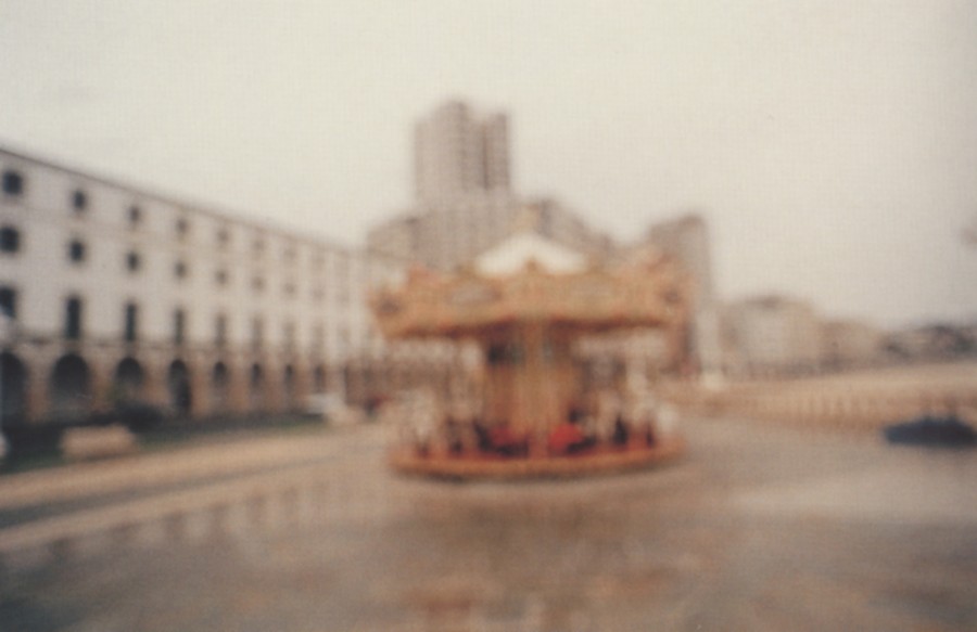 Los lugares de juego son una temática del gusto de Vari Caramés, pero siempre interpretados desde la soledad y la melancolía, alegrías vistas a través de un misterio evanescente. No vemos a los niños jugando, sino la atracción vacía y ausente de vida, rodeada por un espejo de suelo mojado por la lluvia que refleja la soledad, y envuelto todo en una “niebla” que le resta nitidez a la imagen, fruto del desenfocado típico en este artista y que ayuda a crear sensaciones y sentimientos.