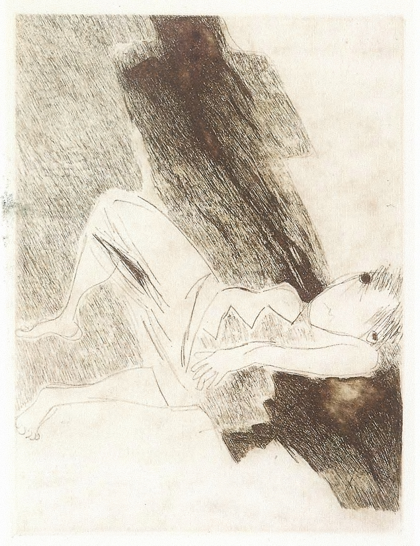 Sin título GOYANES INV: 447 Año de creación: 1984 Dimensiones: 34 x 25 x 0 Técnica: Grabado/papel Comentarios Con dibujo esquemático, de trazos finos, articula la figura de una mujer en posición horizontal, con la sombra que cruza el fondo en diagonal, logrando un espacio pictórico intimista.