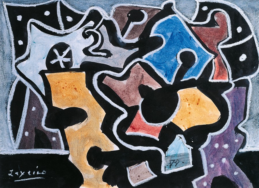 Signos, Arabescos, puntos, rayas, trazos insignificantes, se configuran dentro de un contorno negro, con hachazos de color determinados por movimientos rápidos y enérgicos.