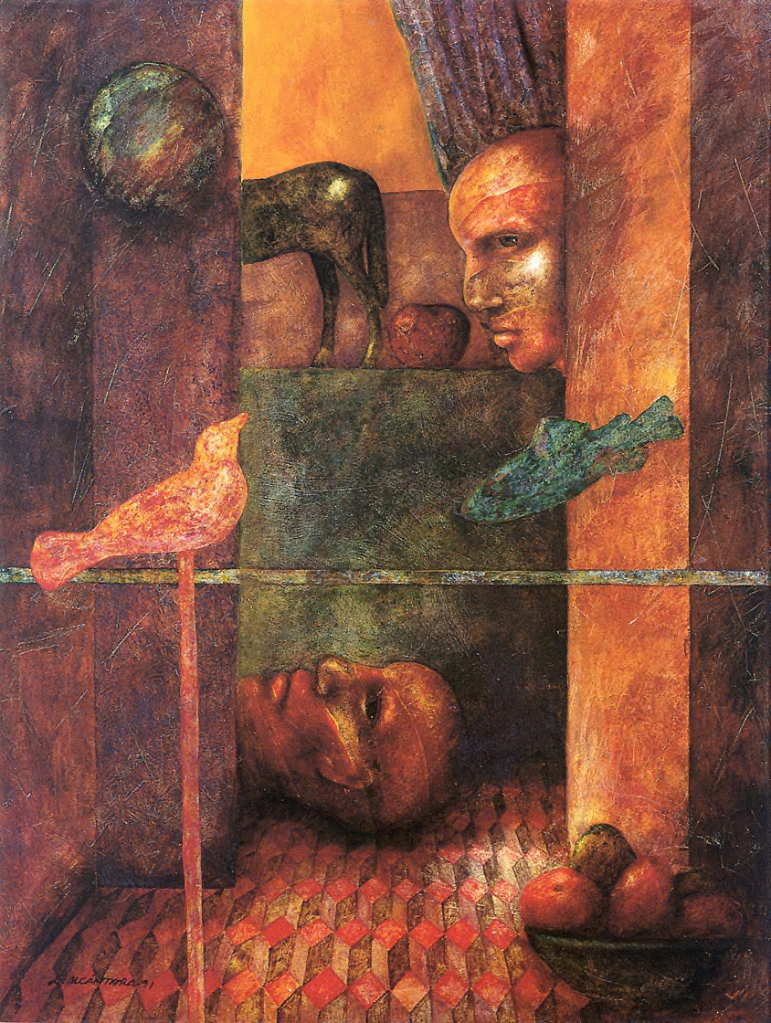 Con una estructura arquitectónica sometida a los efectos de la luz y de la perspectiva, crea un ámbito desvinculado de toda lógica. Son sus voces interiores, plasmadas con los símbolos de una poética personal. Cabezas sueltas, que se asoman detrás de una pared, o que yacen en el suelo boca arriba, un pájaro, y un cuenco con frutas, son elementos de su mitología que, sometidos a una estricta disciplina plástica, provocan pensamientos y filosofías con cierta intención fabuladora.Exposiciones