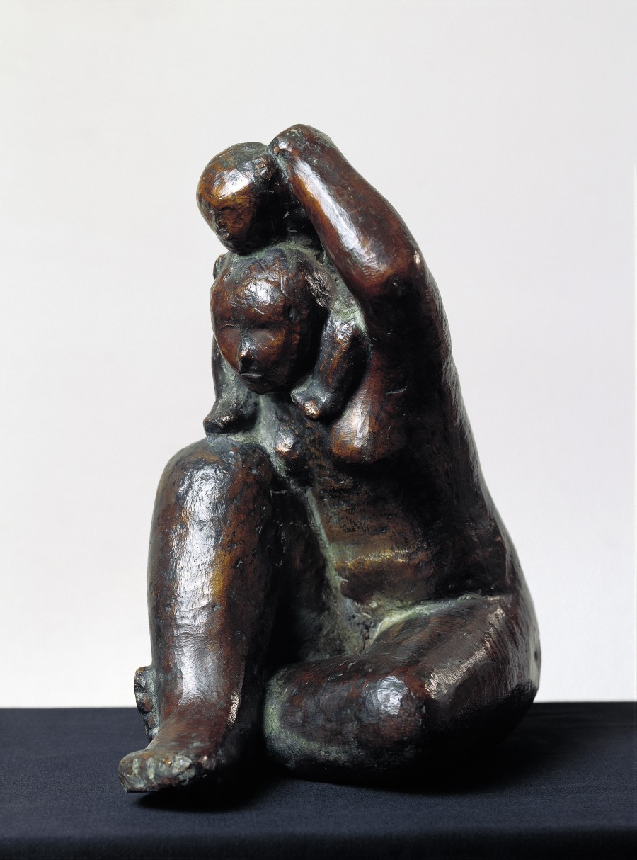 La mujer y la maternidad son temas ligados a la iconografía de Failde. La anécdota aquí es muy simple: el niño está sentado sobre los hombros de la madre, que lo sujeta con uno de sus brazos a la vez que se inclina hacia delante apoyando el pecho sobre la pierna que tiene flexionada. Este hecho le permite desarrollar un suave movimiento articulado con un sentido del ritmo y de las formas de un valor artístico que lo alejan de todo anecdotismo. La luz juega sobre la superficie oscura y brillante de los cuerpos aumentando su plasticidad.Exposiciones
