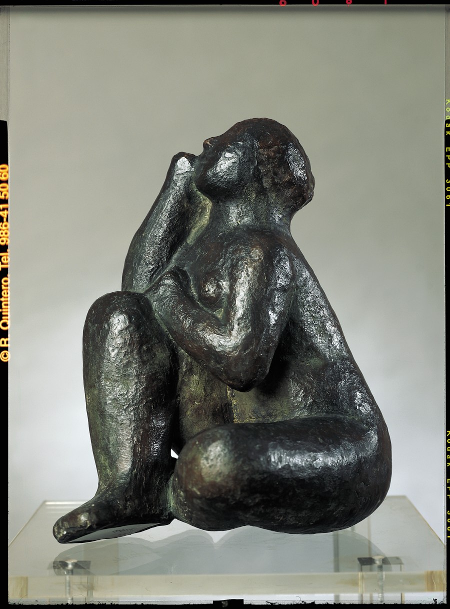 La obra, fundida en bronce en el año 1986, conserva la calidez de la pieza de barro, de la que nace, siendo visibles las huellas de su autor, la ternura que les confería a todas sus criaturas. El gesto de la niña sentada, dirigiendo su mirada al aire, es soñador y ausente. Los sentimientos de inocencia y humanidad se hacen evidentes en una pieza que inspira deseos de abrazar a la figura, que busca la implicación afectiva entre obra y espectador.La sencillez es el rasgo mas destacado de la pieza que, a pesar de su pequeño tamaño, sorprende por su monumentalidad y por la rotundidad de las formas. Su volumen compacto evidencia una obra bien construída, con dominio del oficio, que se apoya en sus conocimientos del Románico y del arte popular.