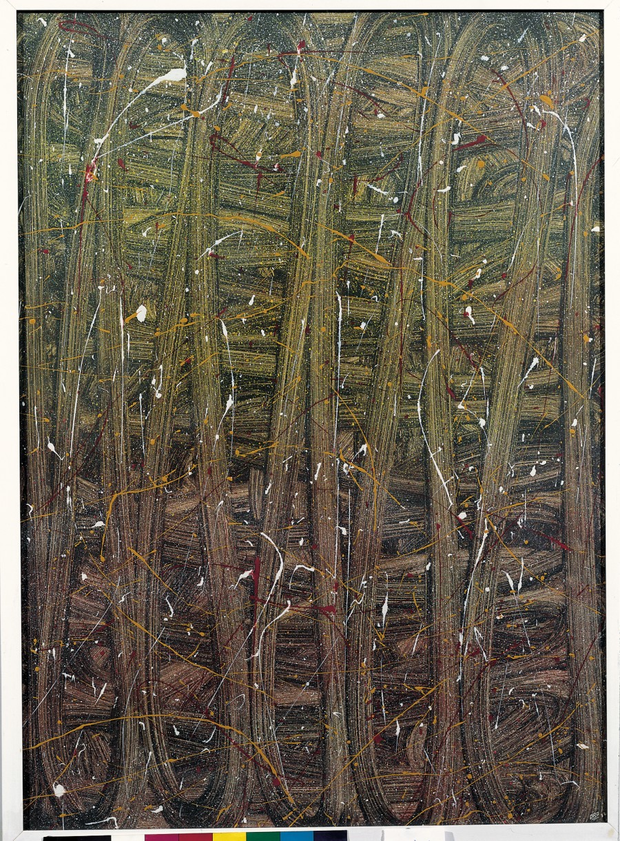A obra está realizada cando Oro Claro comezaba a probar coa cor. Nestas primeiras creacións as pegadas de Pollock e de Lichtenstein están presentes. Constrúe as obras cun automatismo dirixido, respectando o inmediato do momento. Liñas, de grosos variables, crúzanse e encabálganse, con salpicaduras deslizándose sobre un fondo de brochazos que atravesan o campo pictórico de arriba abaixo e de esquerda a dereita, cun ritmo serpeante que deixa a pegada da brocha sobre o papel. Marelos, vermellos e brancos destacan sobre negros e verdosos nunha trama que enche todo o cadro.