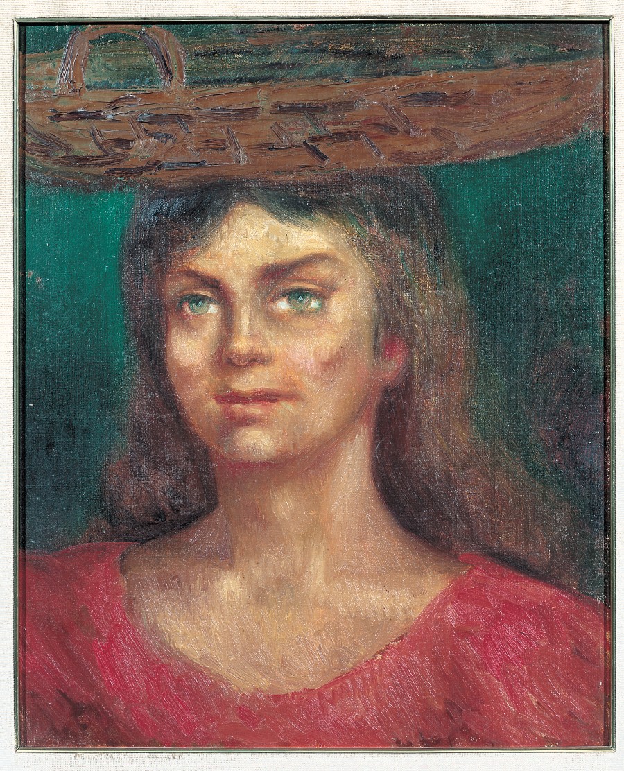 A figura, ben construída, sólida e monumental, delata o dominio do debuxo. A pincelada, solta e impresionista, xoga coa cor para defini-los rasgos, buscando o contraste cromático entre os tons verdes do fondo cos vermellos do vestido.