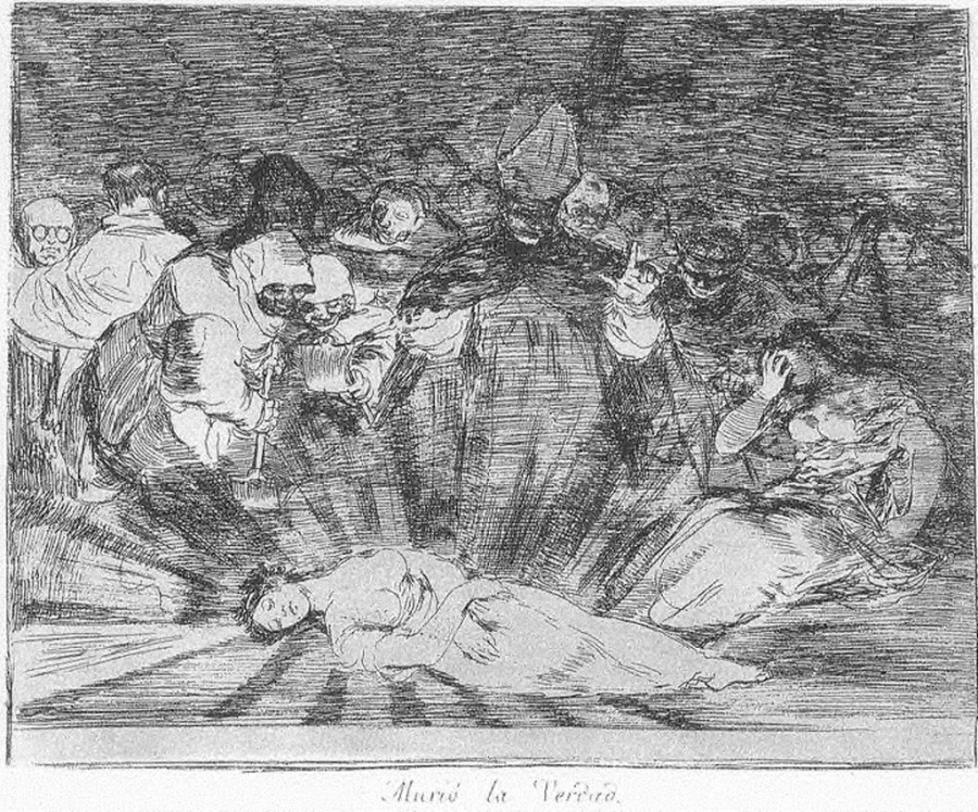 A serie de "Los desastres de la guerra" consta de 80 estampas apaisadas, gravadas en láminas de cobre á augaforte, reforzadas, nalgúns casos, con punta seca e augatinta. Estas láminas, editadas nun papel cun ton amarelado, forman parte dun álbum encadeado con tapas de cartón duro cuberto con pel marrón e adornos en ouro, metal que tamén cobre o canto do mesmo. No lombo leva a inscrición "Goya, Los desastres de la guerra". Ás estampas precédelles unha portada litografiada na que consta o título da obra, o número de láminas que a constitúen, a técnica de execución, o autor e maila entidade que a publica, "Real Academia de Nobles Artes de San Fernando", título que ostentaba a academia antes de te-lo nome co que actualmente se coñece e data de 1873. O seu escudo figura tamén cunha lenda na que se le o lema "Non coronabitur nisi legitime certavenit" (non será coroado máis ca aquel que loitase lexitimamente). Consta tamén o lugar e a data da súa edición "Madrid, 1863", e o autor da litografía en letra pequena, na parte inferior dereita, "Lit. de J. Aragón", complétase o álbum cunha biografía de Goya, a anteportada baleira, dúas follas en branco na parte posterior e as gardas. "Los desastres" que Goya non chegou a publicar en vida, realizáronse entre 1810 e 1820. Neles plasma o xenial artista, de xeito elocuente, a crueldade da guerra, a fame e a represión. Xunta na composición o debuxo, a luz, o movemento, o argumento e o tempo no que transcorre a escena que case chegamos a percibir, como unha secuencia cinematográfica, coma nalgunhas escenas, na nº 15 "Y no hai remedio", na nº 26 "No se puede mirar", a nº 30 "Estragos de la guerra", ou a nº 41 "Escapan entre llamas". As estampas son de pequeno formato, oscilando as escenas gravadas entre unha altura de 11´8 cm na nº 25 e 15´7 cm na nº 78; e unha anchura entre 15´5 cm na nº 15 e 21 cm na nº 24. A esta medida hai que lle engadi-la marxe que bordea a escena na que figuran a lenda que lle dá o título á lámina, situada na parte inferior da mesma ou os números. O tamaño da marxe varía entre 1 cm e 4 cm, carecendo del algunha lámina coma a nº 89, que non ten marxe lateral, e case sen marxe outras coma a nº 29. Algunhas aparecen asinadas dentro do gravado, na parte inferior esquerda "Goya". Esto acontece coas láminas que teñen os números 6, 13, 16, 17, 18, 19, 20, 21, 22, 23, 24, 25, 26, 27, 39, 41, 44, 45 e 55. A carón da sinatura aparece a data "1810", nos números 22 e 27. Case tódalas estampas levan un número na marxe superior esquerda que non é o número de orde que puxo Goya, que non se mantivo nin sequera no álbum de Ceán, o seu amigo. O rastro deses números orixinais pódese detectar nalgunhas láminas, coma a nº 10 "Tampoco", que conserva na marxe inferior esquerda o nº 19 co que fora marcada en tempos de Goya. Un finísimo marco bordea a meirande parte das escenas. Del carecen os números 4, 32 e 47; na estampa nº 9 só se ve a liña da parte inferior; na nº 37 nótase moi pouco, só nunha esquina e na 46, nun lateral e tamén nunha esquina. Por acordo da Real Academia de Belas Artes de San Fernando tódolos cobres pertencentes á obra gravada de Goya deixaron de estamparse para evita-lo deterioro das pranchas cunha rutinaria edición. Xa non se volverán editar "Los desastres de la guerra" nin os demais gravados do artista de Fuendetodos. A Calcografía Nacional, ubicada na Real Academia de Belas Artes de San Fernando, creou o Gabinete Francisco de Goya, no que, desde decembro de 1990, se expoñen, con carácter permanente, as pranchas de cobre, consideradas como un obxecto artístico incomparable en si mesmo, como unha obra de arte propiamente dita, e non só como un medio. Unha figura feminina, tendida no chan no sentido horizontal do plano da prancha, ocupa todo o primeiro termo. Detrás, un grupo de cregos, presididos por un bispo, fan xestos para enterrala. Á dereita, unha figura sentada, cos atributos da Xustiza na man, oculta o rostro coa outra.