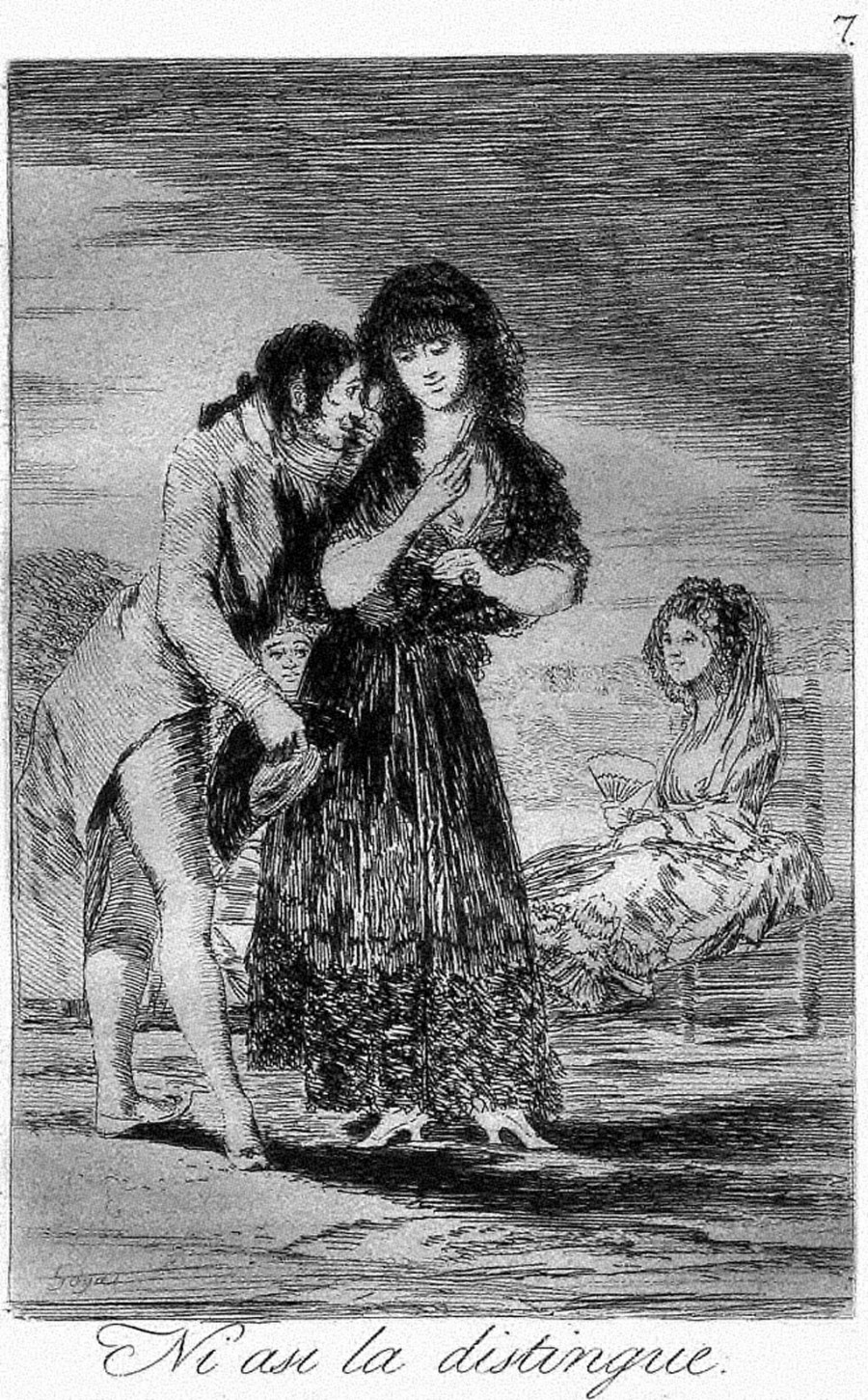 O exemplar de "Los caprichos" que posúe Caixavigo,inventariado co númeno 2003 foi editado en 1868 pola calcografía Nazonal.Pertence a unha terceira edición.Trátase dun tiraxe cunha excelentísima calidade que revela o bon estado no que se atopaban as pranchas nesa fecha de 1868. As 80 laminas que constitúen esta fascinante serie entán impresas sobre papel de tinta amarelento e preséntanse encuadernadas en tapa solta revestida de papel amarelo.Na tapa dianteira figura o título da obra e do autor,impresos en letras de molde,e un texto no que se nos especifica o número de estampas, a técnica de grabazón "Al agua fuerte con Aguadas de Resinas" o lugar e a fecha de edición "Madrid 1868" e o centro que as edita "Calcografía Nacinal" concretanto a dirección e o lugar onde se atopaba situada a cartografía.Na tapa posterior anunciábanse outros brillantes grabados de Goya publicados pola cartografía Nazonal,especificando medidas e prezos en escudos e milésimas de escudos. As 80 láminas teñen un formato vertical e unha medida media aproximada de 18x12 cm. que é a medida claramente señalada na táboa impresa na tapa posterior do libro.Van numeradas do 1 ate 80 e levan unha lenda individual que lles da título a cada unha.Soamente aparecen firmadas por Goya as que levan os números:14;27;60;63;65;68;69;70;. As láminas 32 e 39 están grabadas de xeito pouco habitual.En 1998,un ano antes de cunplirse o bicentenario da primeira edición dos caprichos,Caixavigo desarticulou o conxunto global que constituía o exemplar da serie,para expoñer o público todas as estampas de "Los caprichos" no centro cultural Caixavigo. Posteriormente,esta exposición partiría de Vigo para ser mostrada de forma itinerante por toda Galiza.con tal motivo a propia entidade publicou un libro cun texto de F.Pablos e un extenso e detallado estudo sobre a serie e cada unha das suas láminas,todas reproducidas,realizado por Arturo Ansón Navarro.