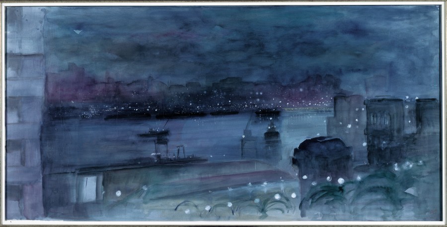 A atmosfera atlántica é o máis sobresaínte desta obra onde o azul do mar e as luces da noite contribúen a que as formas se desdebuxen nunha paisaxe que ten a cidade herculina como a súa fonte de inspiración.A intensidade da cor acentúase pola transparencia da acuarela que permite que os pequenos puntos de luz branca, realizados con gouache, en contraste cos azuis profundos, brillen con extraordinaria intensidade. A cor non é nítida, difumínase, esvaécese e nunca é pura, é cor que se torna en cor.