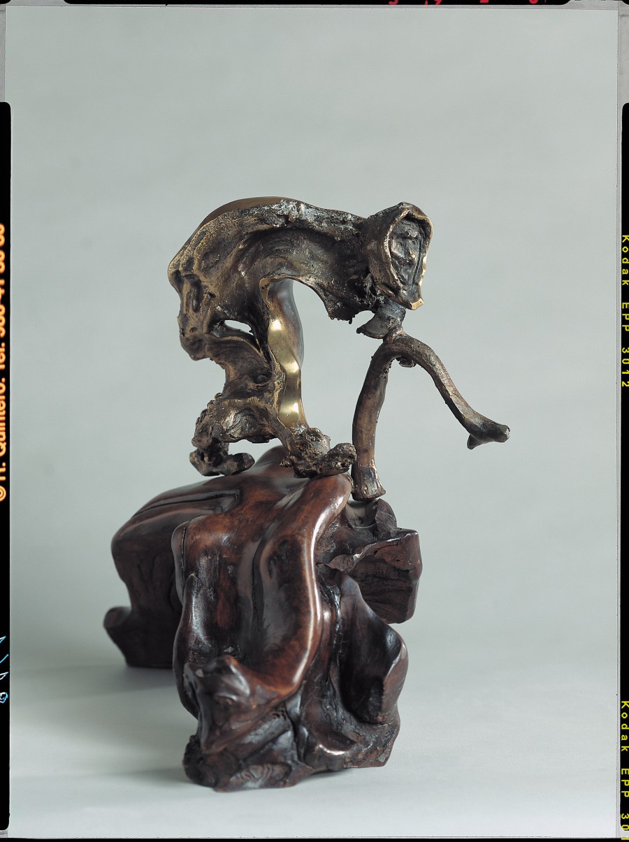 O dominio da materia permite alternar zonas texturadas de difícil relevo con superficies lisas, acadando ricos contrastes lumínicos que enriquecen a peza invitando a contemplala dende múltiples puntos de vista.